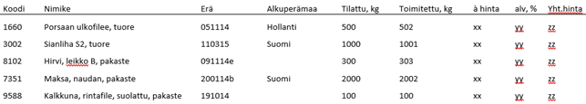 - elintarvikkeen määrä (esim. kg, litraa tai kpl).